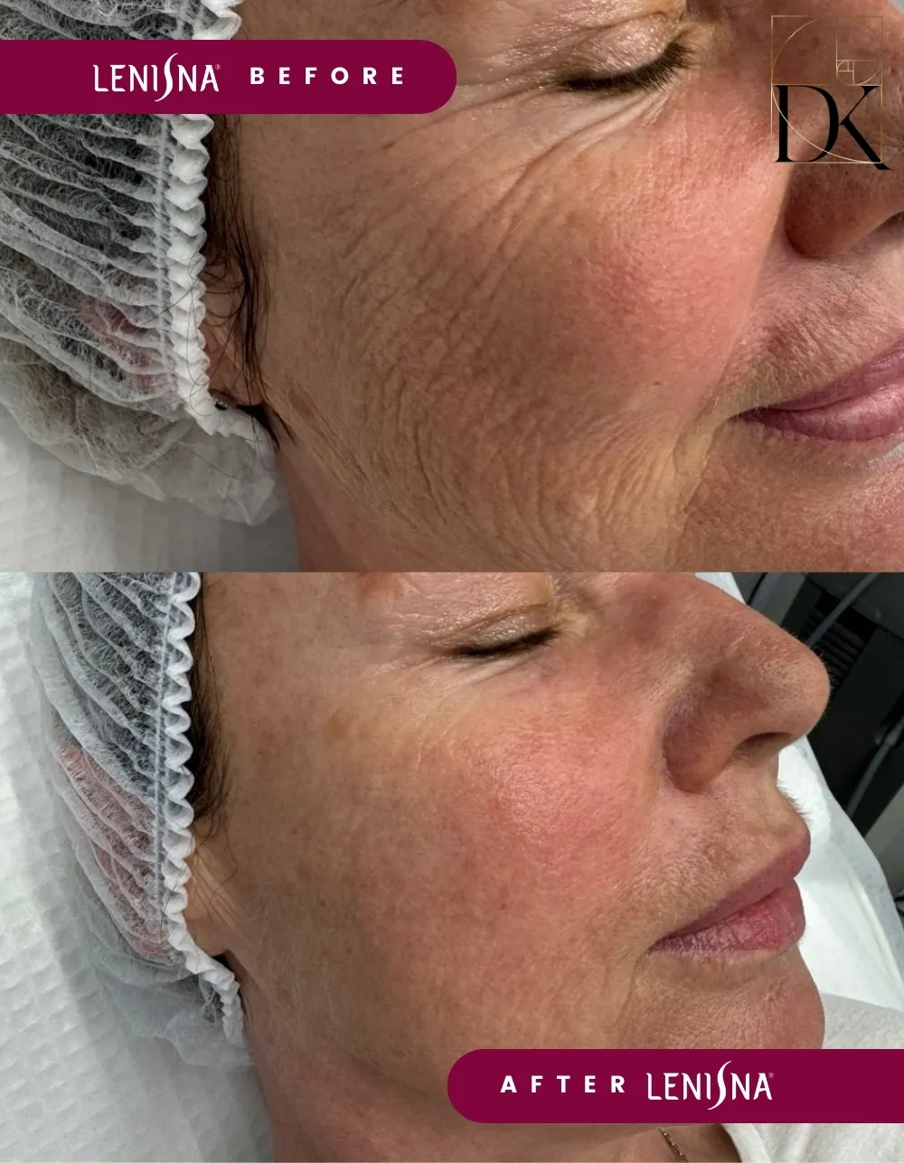 Ефект від застосування препарату Lenisna: помітний одразу після ін'єкції завдяки вмісту гіалуронової кислоти, яка забезпечує негайний ефект заповнення